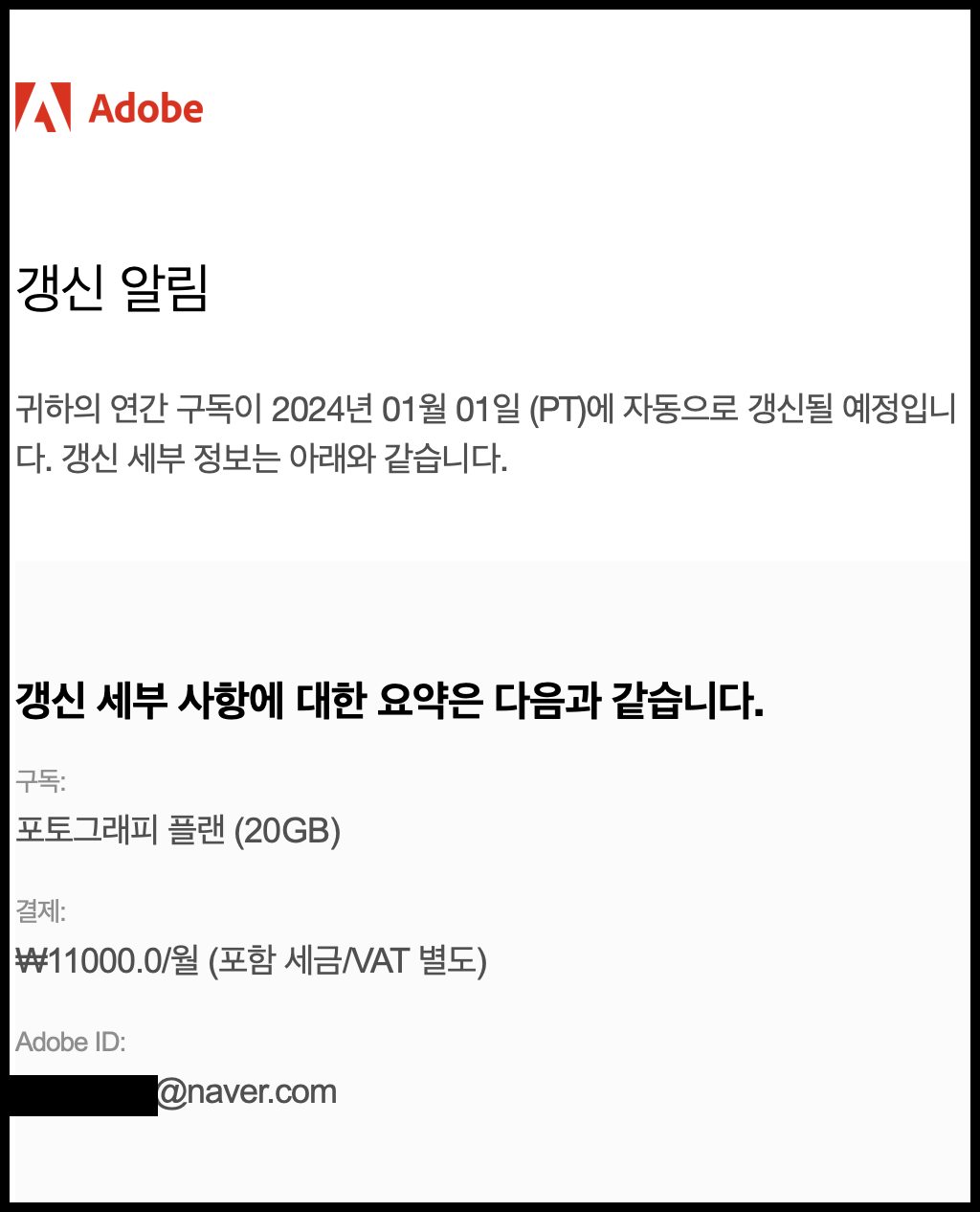 어도비에서 2년 째 포토그래피 플랜을 연간 구독 중입니다. 매년 1월 1일부터 12월 31일까지 1년 단위로 새 구독이 갱신되도록 했는데요.