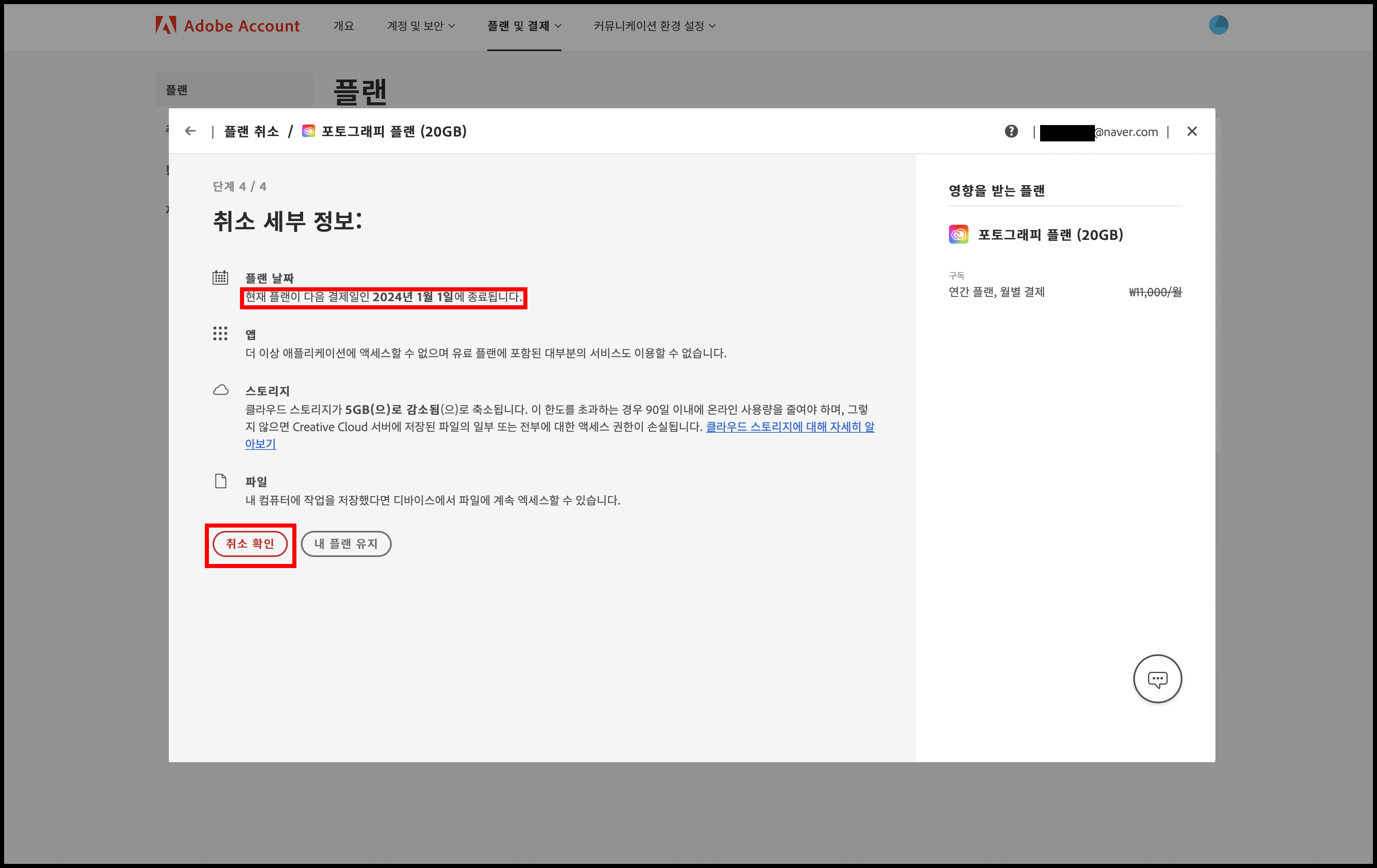 어도비 연간 구독 (포토그래피 플랜) 해지하기 본문